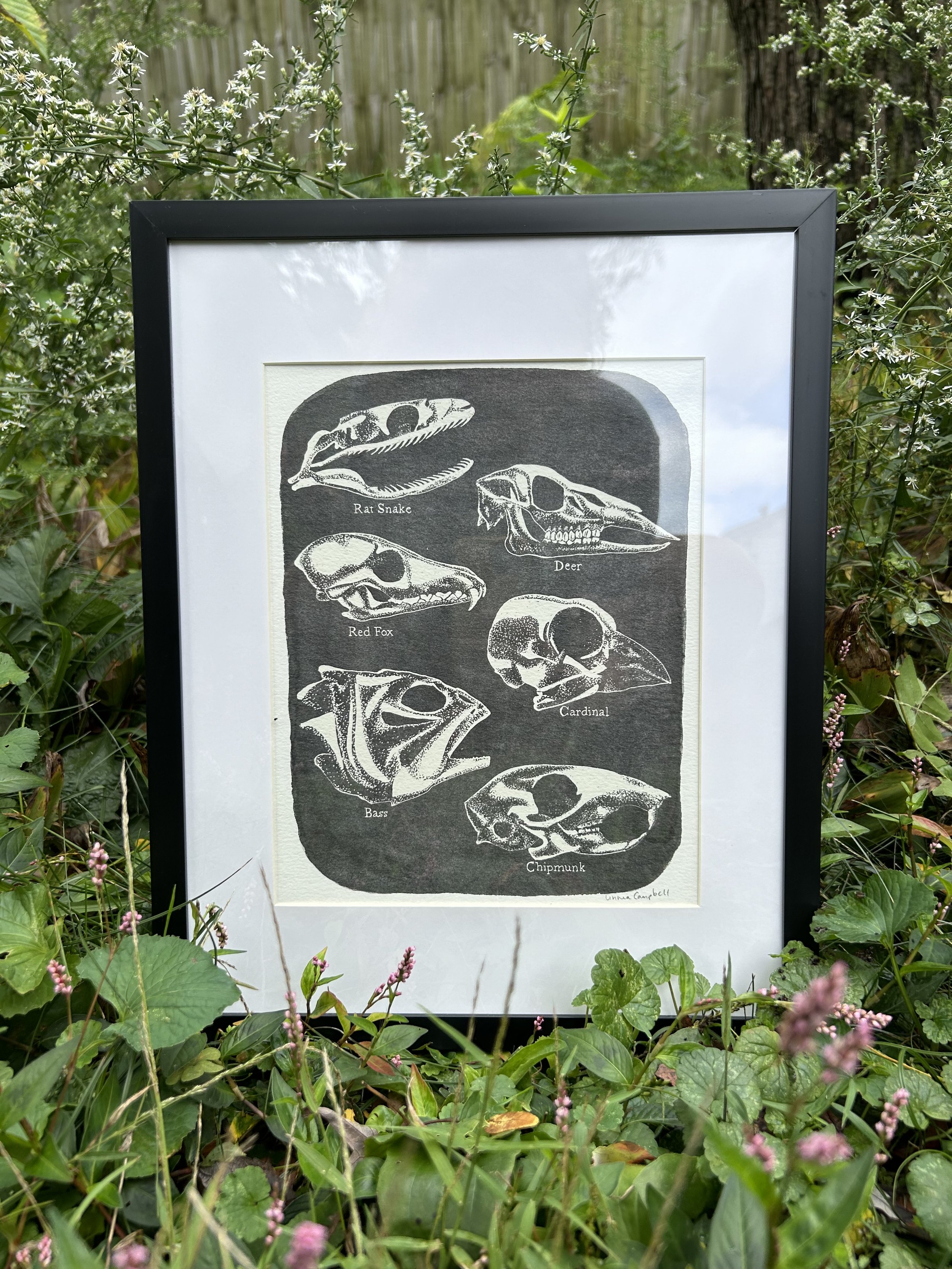 Fine art giclée prints of my skull illustrations on top of a watercolored background. Get your walls ready for autumn with this print!