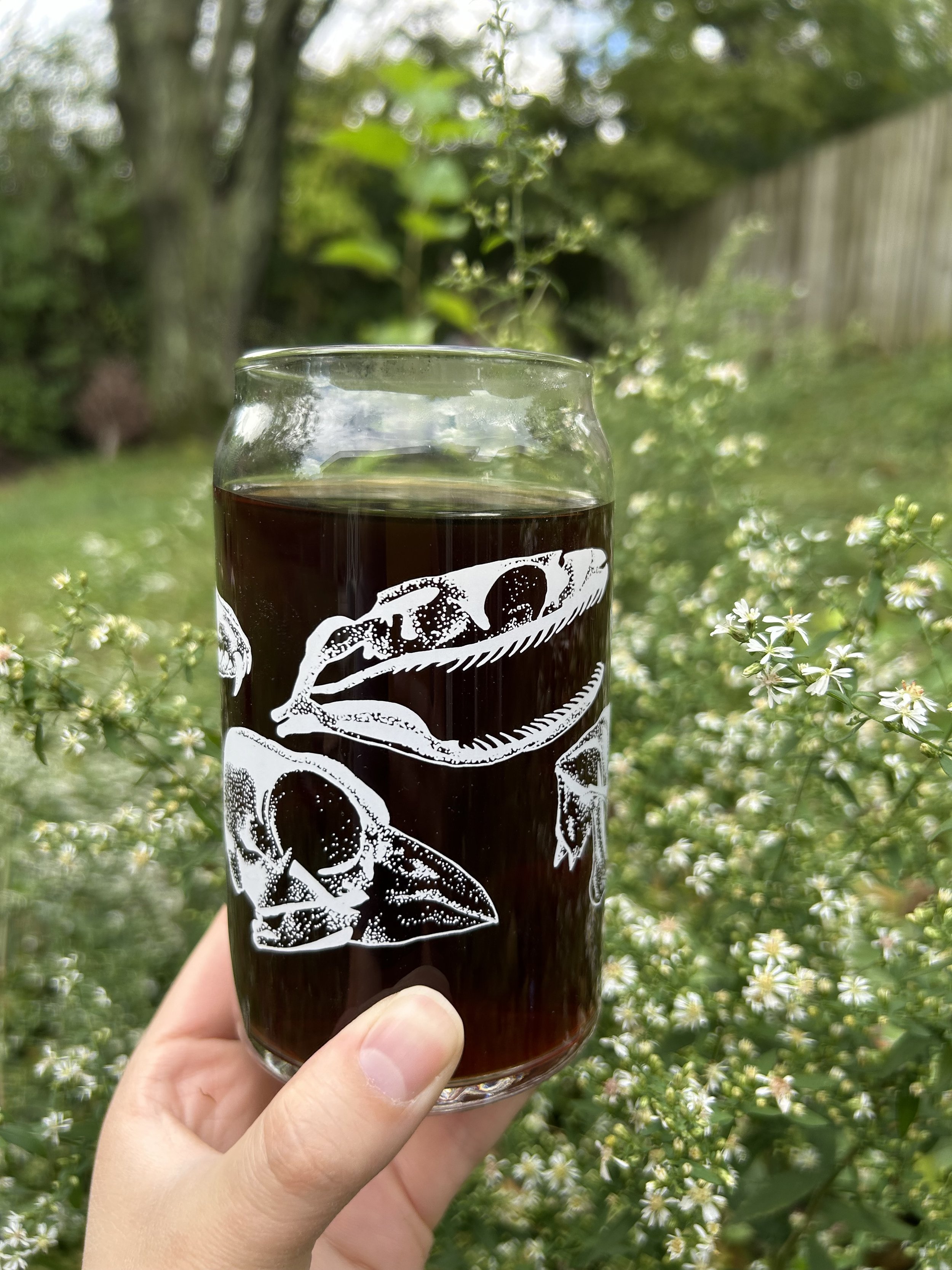 New glass cups, printed in white!! They look great with a colorful drink or your morning coffee, and are dishwasher safe. These glass cups can be ordered in a set with any of my other cup designs as well.